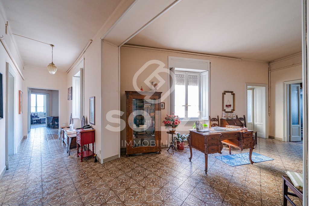 Grande atrio di ingresso, ampia cucina abitabile con balcone, sala, quattro camere, studio, stanzetta guardaroba, ampio locale ripostiglio, bagno finestrato ed ampia stanza da adibire a lavanderia e convertibile in secondo bagno.